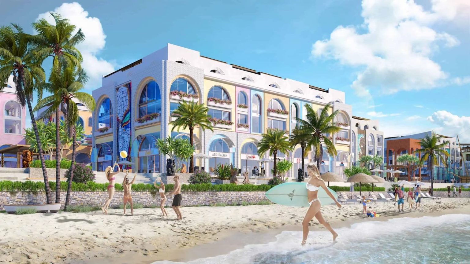 Khu nhà phố kinh doanh sầm uất và vui chơi giải trí sát biển.